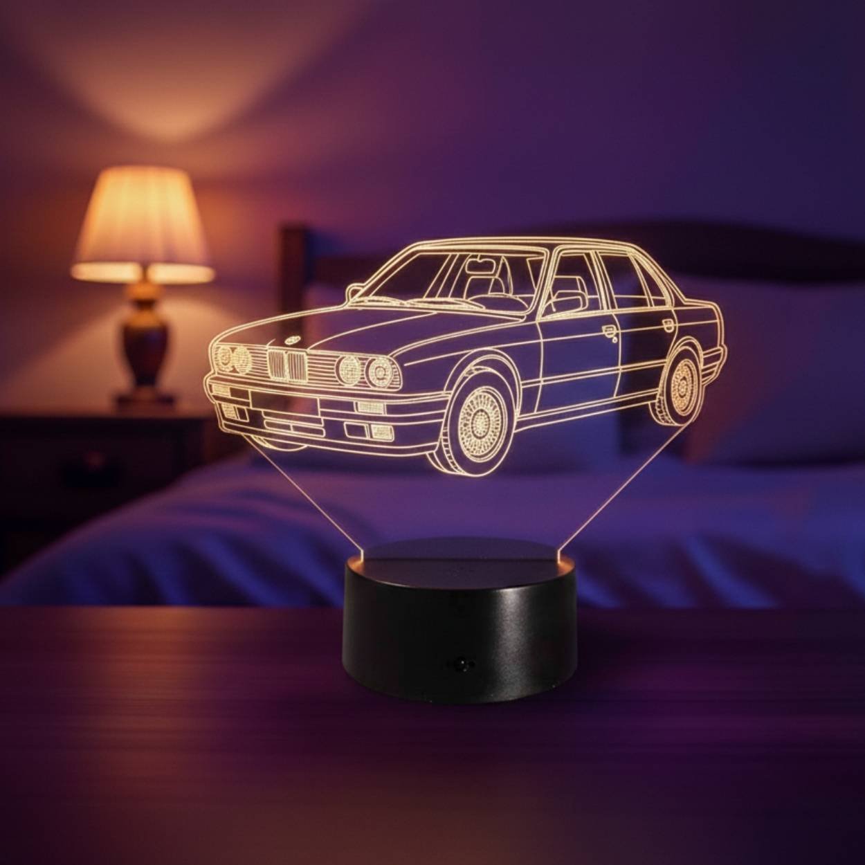 Véritable icône de l’automobile, la BMW Série 3 E30 inspire cette lampe 3D LED qui séduira les amateurs de modèles légendaires et de décoration automobile intemporelle.