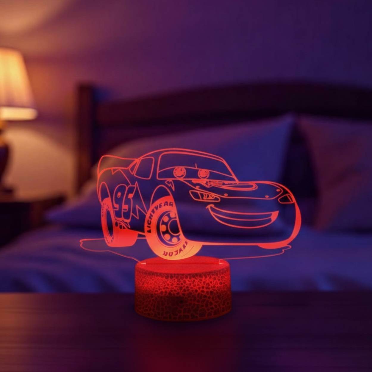 la lampe 3d cars flash mcqueen est idéale pour les enfants et les fans de l’univers automobile du film Cars. inspirée du célèbre bolide Flash McQueen, elle apporte une ambiance dynamique et joyeuse à une chambre d’enfant.