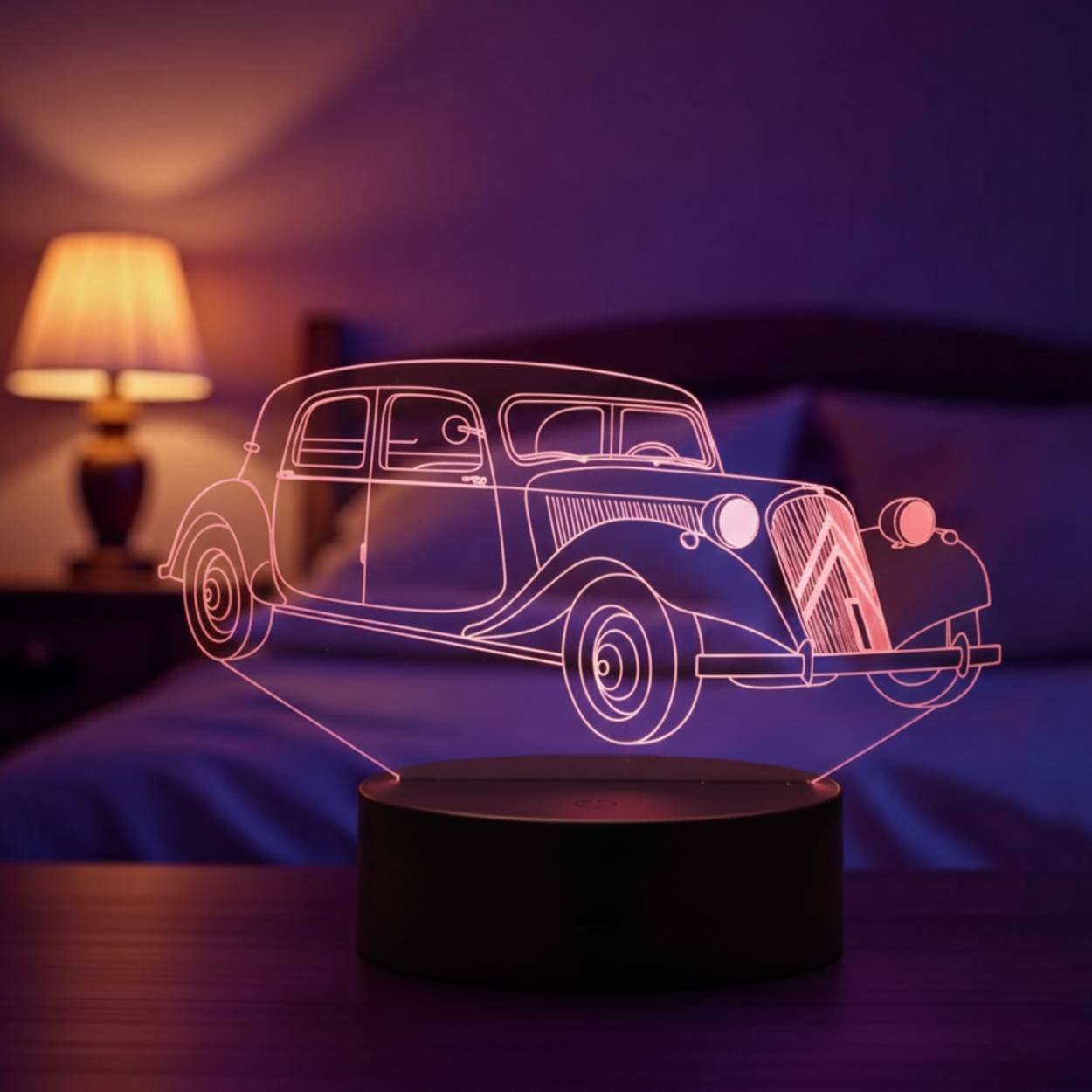 Icône de l’automobile française, la Citroën Traction inspire cette lampe 3D LED qui séduira les passionnés de voitures classiques et de décoration automobile intemporelle.
