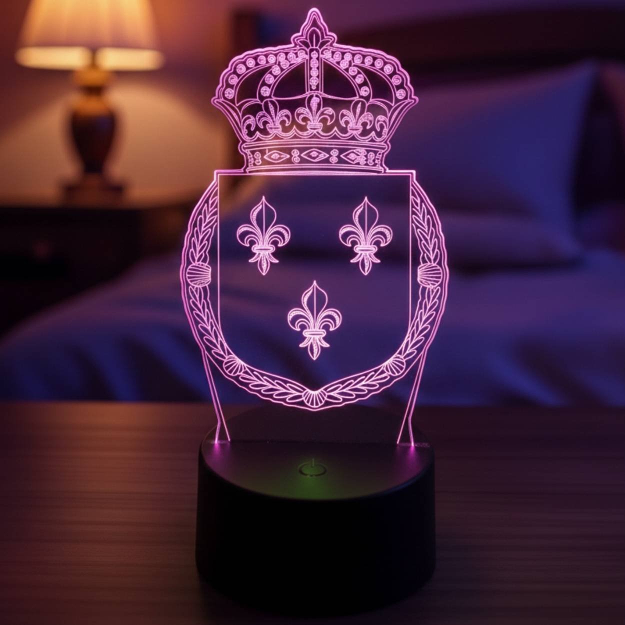 cette lampe led est une excellente idée cadeau pour les amateurs d’histoire, de symboles royaux ou de décoration élégante. la lampe 3d fleur de lys royaume de france combine héritage, design moderne et éclairage décoratif dans un objet qui impose le respect sans en faire trop.
