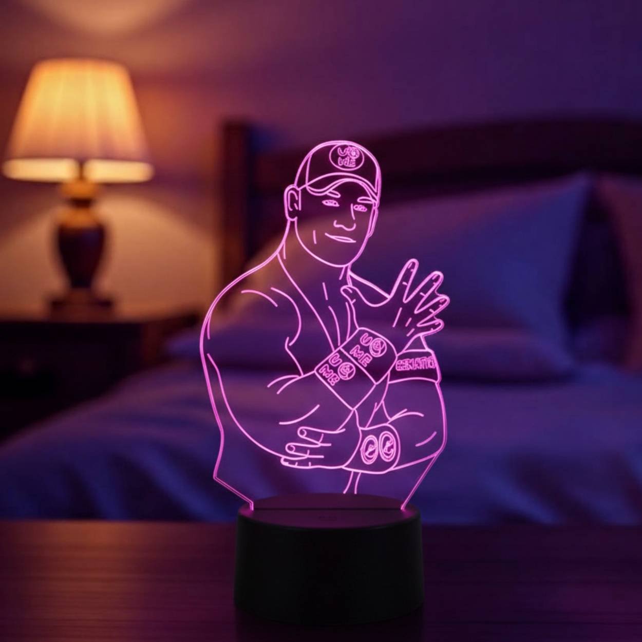La lampe 3D John Cena est idéale pour les fans de catch et de divertissement sportif. Inspirée de la légende du ring John Cena, elle offre un effet visuel 3D puissant qui apporte une ambiance spectaculaire à n’importe quelle pièce.