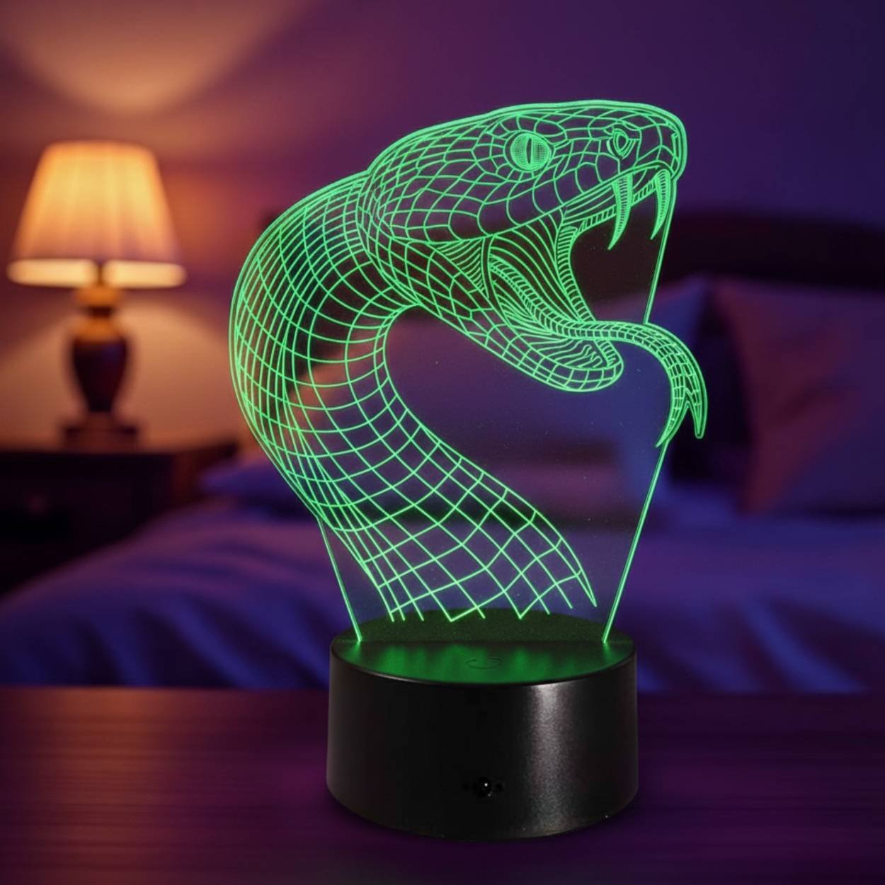 Ajoutez une touche audacieuse et moderne à votre intérieur avec cette lampe 3D serpent à effet illusion optique. Son éclairage LED met en valeur un visuel en relief saisissant, donnant l’illusion d’un serpent en trois dimensions, au design fluide et dynamique.