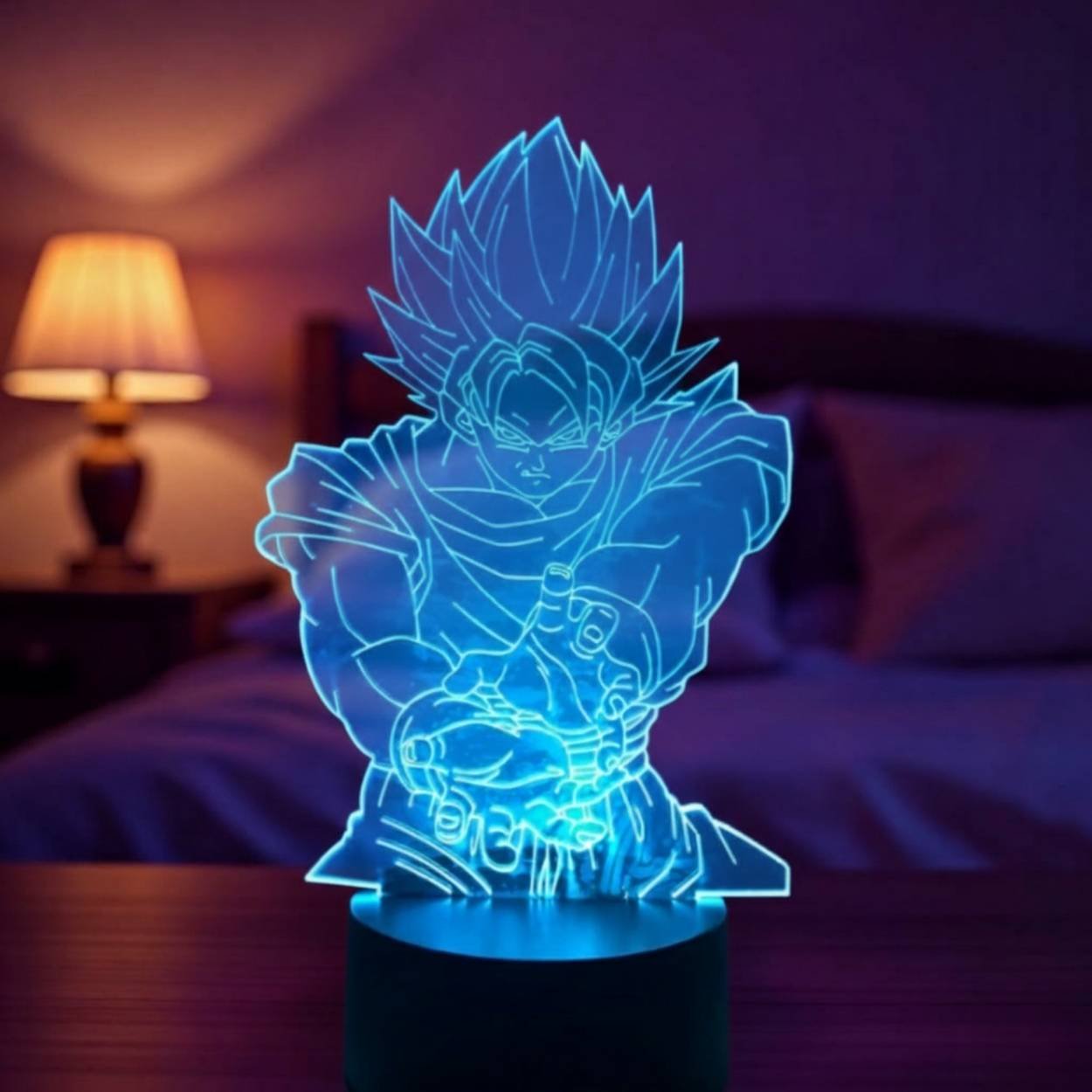 la lampe 3d son goku dragon ball est parfaite pour les fans d’animés japonais et de l’univers culte de Dragon Ball. inspirée du personnage légendaire Son Goku, elle offre un effet visuel 3d dynamique qui apporte une ambiance puissante et énergique à n’importe quelle pièce.