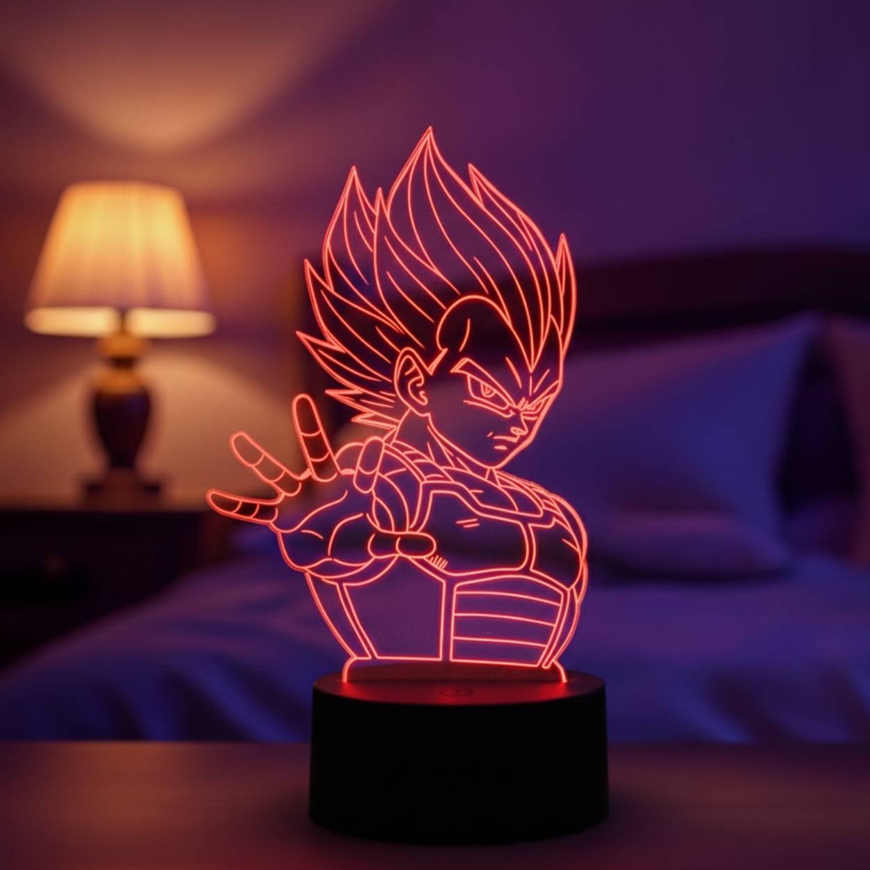 Lampe 3D Vegeta Dragon Ball LED avec effet visuel 3D, idéale pour décoration anime ou cadeau pour fans de manga.